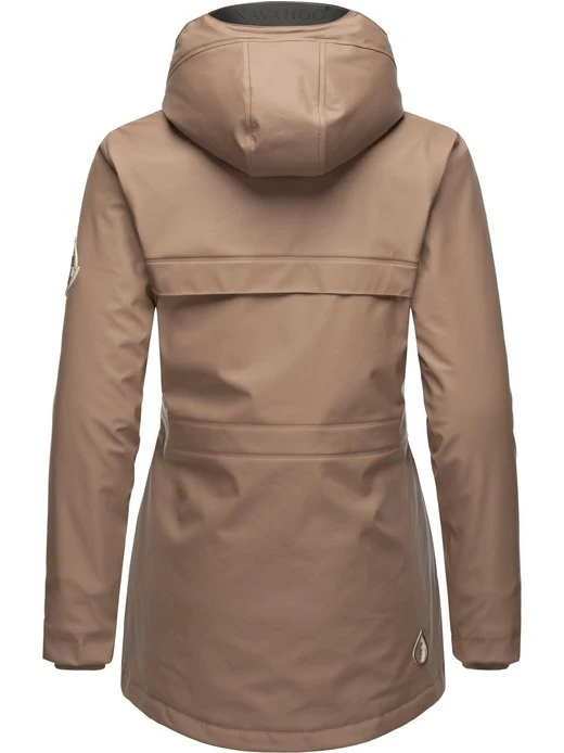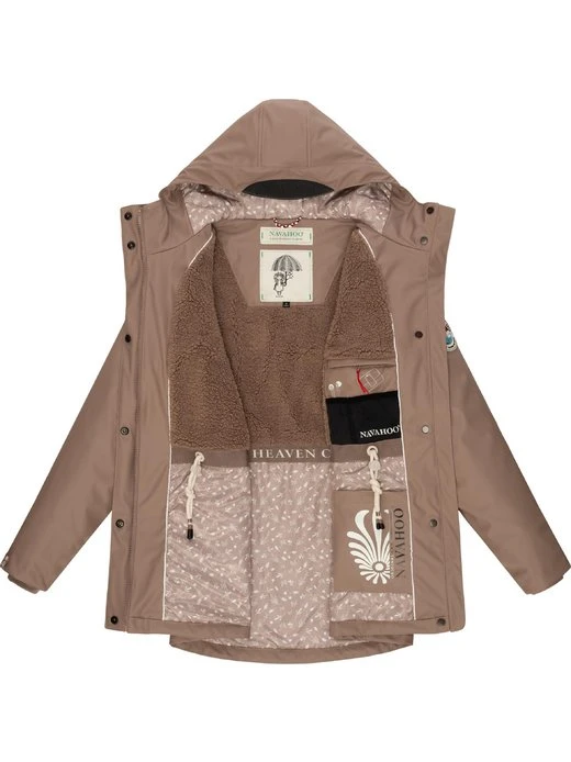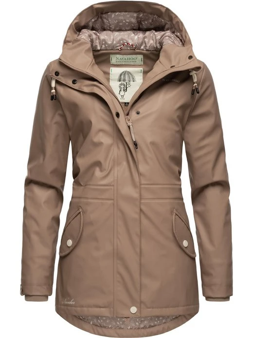 Wasserdichte, gefütterte Damen Regenjacke von Navahoo mit großer Kapuze und figurumschmeichelndem Schnitt – ideal für nass-kaltes Wetter in der Übergangszeit.