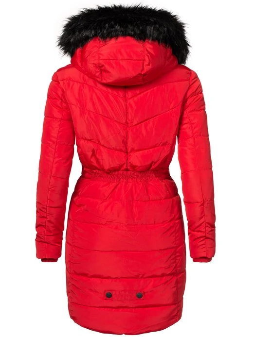 - Gesteppter Mantel mit abnehmbaren Kunstfell an der Kapuze