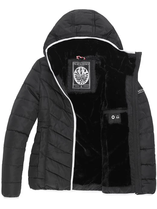 - Gesteppte Damen Winterjacke mit Kapuze und weichem Teddyfell