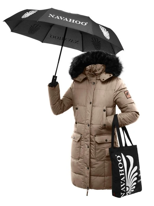 Damen Winterparka mit weicher Kunstfellkapuze (beides abnehmbar), inkl. Einkaufstasche aus Stoff für mehr Nachhaltigkeit und praktischem Regenschirm – der perfekte Begleiter im Winter!
