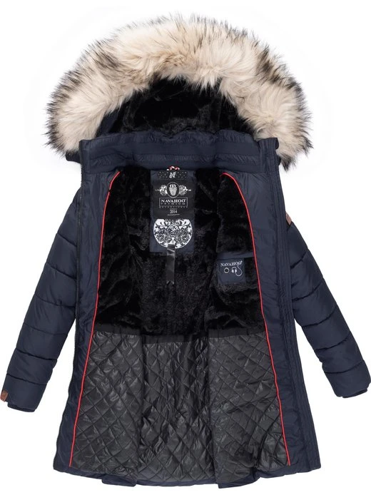 Modisch taillierter Damen Wintermantel von Navahoo mit großer Kunstfellkapuze (beides abnehmbar), innen kuschelig weich gefüttert.
